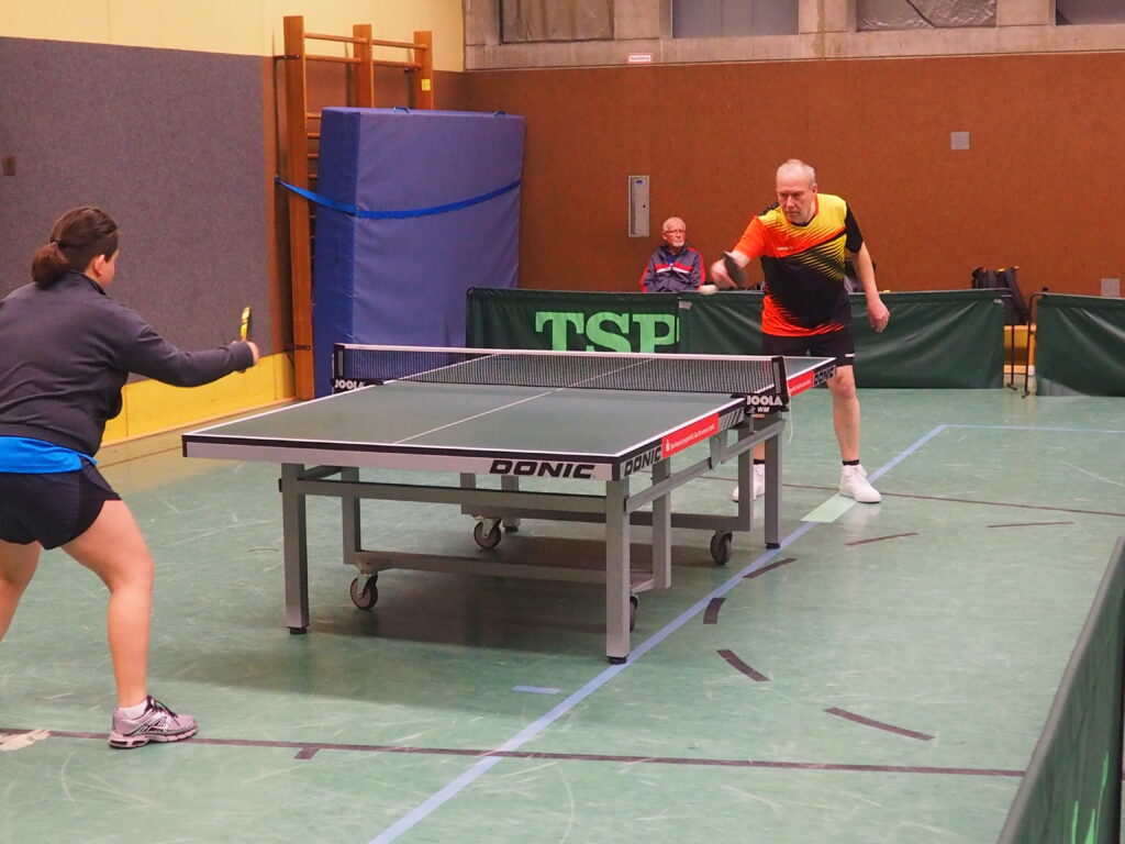 Zwar gewann die Dritte ihre Begegnung mit 8:2 gegen Baumberg III. Einen Eintrag in die Geschichtsbücher bringt dieser Sieg allerdings nicht. Gegen die mit drei Spielern angetretenen Gäste taten sich unsere Jungs schwerer, als es das Ergebnis aussagt. Am Ende zählt nur der Sieg, der mit vier Punkten belohnt wurde, und die Mannschaft weiter weg vom Tabellenende bringt. Robert brachte es fertig einen 7:1 Vorsprung zu verspielen und verlor mit 7:11. Auch die nächsten sieben Punkte gingen an seinen Gegner, so dass er 17 Ballwechsel in Folge ohne Punktgewinn blieb. Eigentlich nicht zu erklären.